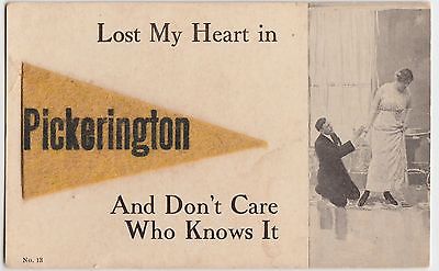 Ohio Postcard c1910 PICKERINGTON Felt Pennant Fairfield Franklin County
