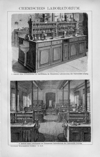 1895 OLD CHEMISTRY LAB Antique Engraving Print