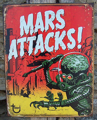 Title (ebay affiliate link): Mars Attacks Sci-Fi Movie Cinema Tin Sign Ad Old Style Retro Room Wall Decor USA