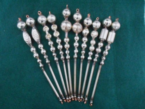 Title (ebay affiliate link): 10 VINTAGE GLASS BEAD ICICLE ORNAMENTS~ALL SHIMMERING SILVER ~ FANCY SHAPE BEADS