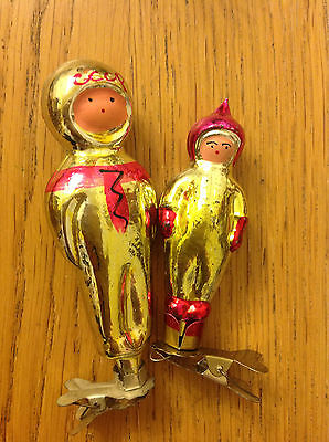 Vintage Christmas silver glass ornaments 2 LITTLE SPACEBOYS