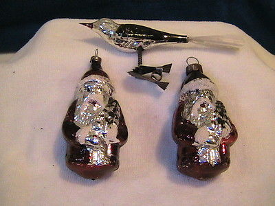 Title (ebay affiliate link): 2 ANTIQUE GERMAN SANTA CLAUS CHRISTMAS ORNAMENTS & MERCURY GLASS BIRD 3 1/2"