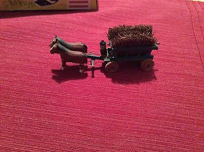 Vintage German PUTZ VILLAGE Erzgebirge Corn or Wheat Horse Drawn WAGON-Penny Toy