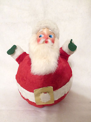 Vtg Plush Santa Music Box Rubber Face Real Fur Beard Mid Century 10.5"