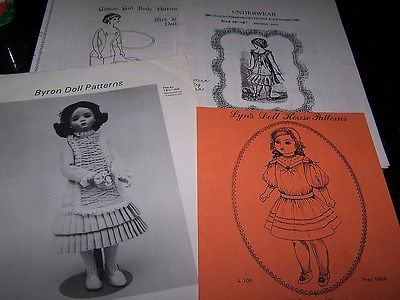 4 VINTAGE PATTERNS FOR ANTIQUE DOLLS DRESS MAKING