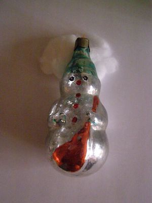 Antique Russian Christmas.Transparent Glass Tree Ornament Snowman.Vintage.