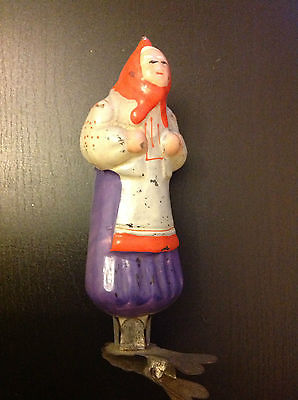 Vintage Christmas silver glass ornament TALE OLD WOMAN