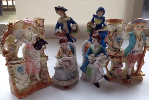 6 Glass Porcelain Figurines 9" 2 Book Ends