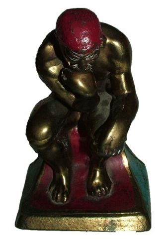 p7196: Antique Bronze "The Thinker" Painted Statue Book End