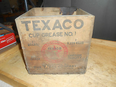 L1124- Antique Texaco Cup Grease No, 1 Wooden Box Crate Case- Advertising Sign