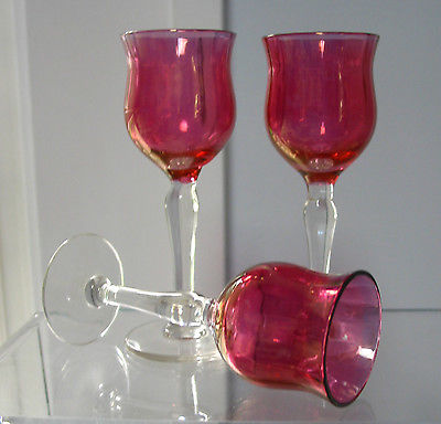 3 VINTAGE BOHEMIAN CRANBERRY RED CORDIAL LIQUOR GLASSES,BEAUTIFUL