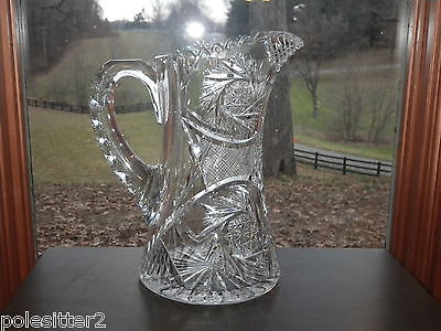 Antique ABP American Brilliant Cut Glass 9" Sunburst Star Lemonade Water Pitcher