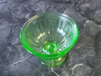 GREEN DEPRESSION GLASS SHERBET BOWLS (3)