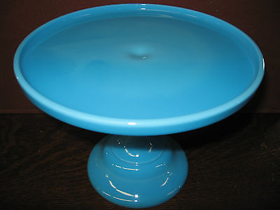 Blue milk Glass cake serving stand plate platter pedistal raised tray Bonnie art