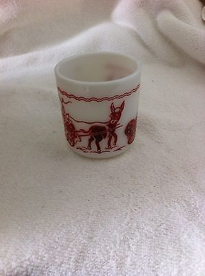 Vintage Hazel Atlas Co Milk Glass White with Red Clowns Donkey Clown Child's Mug
