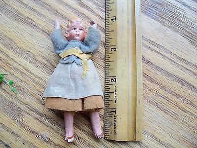 ANTIQUE VTG bisque miniature doll jointed painted 4" felt clothes German Germany
