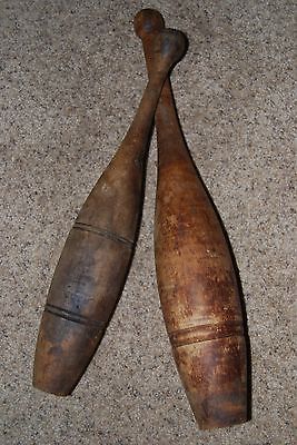 Pair Of Large Vintage Wood Indian Club Juggling Pins