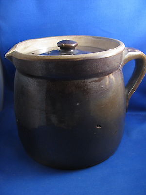 ANTIQUE BROWN GLAZED STONEWARE CROCK WITH LID-PITCHER SHAPED