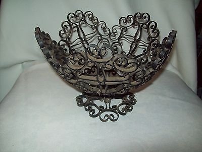 VINTAGE WROUGHT IRON FILIGREE PEDESTAL BOWL BASKET