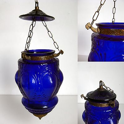 Vintage Chinese Cobalt Blue Glass Hurricane Lamp / Candle Lantern