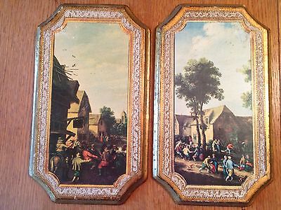 Pair Vintage Italian ITALY Florentine WOOD WALL HANGINGS Plaques