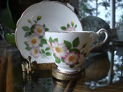 Vintage Regency Tea Cup and Saucer Pink Rose Gold Scalloped Porcelain England