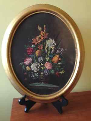 Vintage floral framed print Dorothea Bastanier wood gold florentine oval frame
