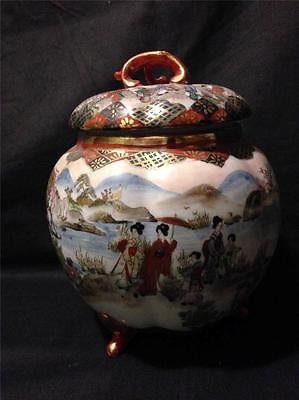 Kutani Kanji marked Shoza style Biscuit Jar Geisha beading gold $49.99 No Reserv