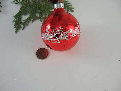Vintage Stencil Red Mica Snowy Town Shiny Brite Mercury Glass Christmas Ornament