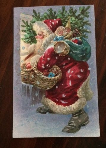 Title (ebay affiliate link): Vintage Embossed Christmas Postcard - Santa With Tree And Basket Of Toys