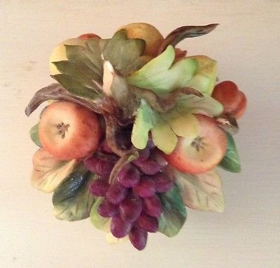 Title (ebay affiliate link): Vintage Capodimonte PORCELAIN BISQUE APPLES GRAPES BASKET MULTI COLOR EXCELLENT!