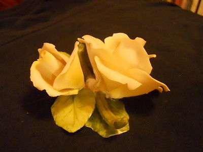 Title (ebay affiliate link): NAPOLEON 2 blossom YELLOW & GREEN CAPODIMONTE Porcelain Rose Flower clean break