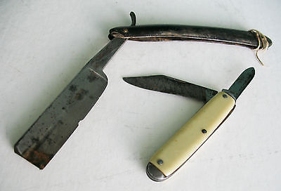 Antique Sheffield Wade & Butcher Straight Razor and Vintage Pocket Pen Knife