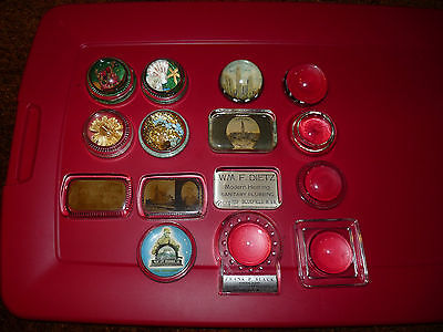 Title (ebay affiliate link): Vintage Lot of 15 Glass Advertising Landmark Magnifying Paperweights