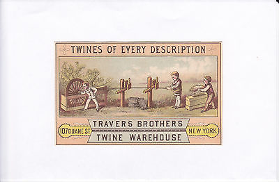 1880's Victorian TRAVERS BROTHERS TWINE WAREHOUSE N.Y. Color Litho Trade Card