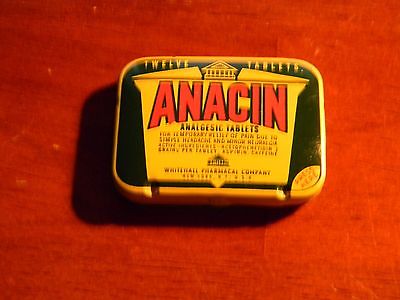 Vintage ANACIN Pain Reliever Aspirin Metal Tin Hinged Box ~ Old