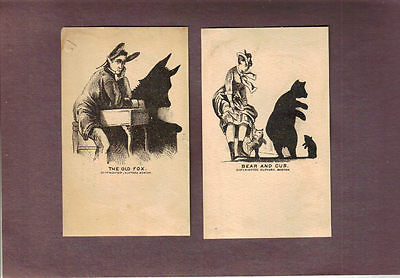 Shadow Puppet Old Fox Bear & Cub 2 Stock Trade Card Samples c1881