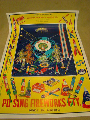 VINTAGE PEACOCK FIREWORKS POSTER PO SING Macau Schneitter Fw & Import 21X31 VGC
