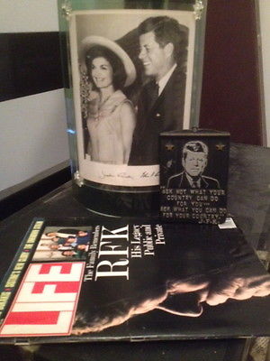 john kennedy & Jackie signed photo, Life Magazine and wall picture quote