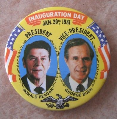 Title (ebay affiliate link): 1981 REAGAN / BUSH INAUGURATION DAY LARGE 3 1/2 INCH BUTTON PIN