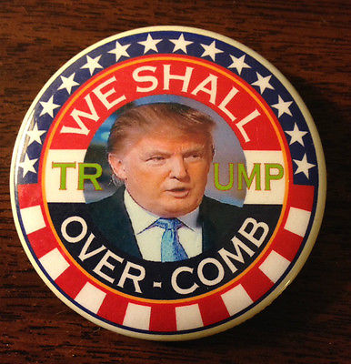Title (ebay affiliate link): Funny Guardfrog Trump "We Shall Overcomb" Pinback Button