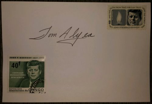 Title (ebay affiliate link): KENNEDY ASSASSINATION REPORTER TOM ALYEA SIGNED CARD JFK FILMED RIFLE DISCOVERY