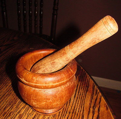 Primitive Wood Mortar and Pestal "well used"