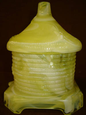 VASELINE MILK SLAG URANIUM ART GLASS HONEY BEE JAR POT