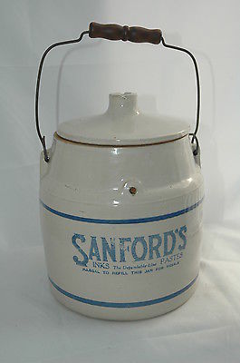 SANFORD'S INKS, NEW YORK STONEWARE CROCK WITH BAIL HANDLE