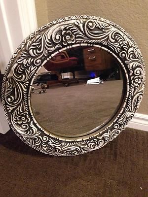 VTG LARGE ROUND ORNATE ROSE SCROLL WALL MIRROR shabby COTTAGE chic