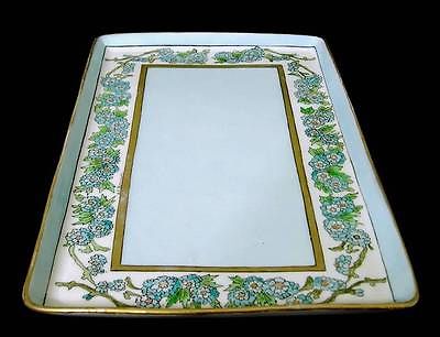Antique T&V Limoges Signed Art Nouveau Vanity Dresser Tray Flowers Blue & White