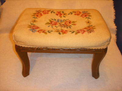 Antique Needlepoint Foot Stool