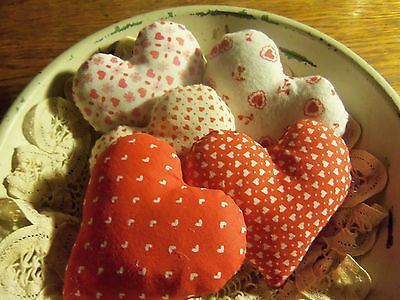 Prim bowl filler/tucks ornies *VALENTINE HEARTS* set/5 red/white W hearts