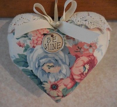 Title (ebay affiliate link): Primitive VALENTINE Heart Roses Doily Accent BE MINE Heart Tuck Wall Hanging